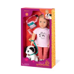 ذهبت في نزهة مع هازل وجروها السعيد! يحب مدرب الكلاب هذا مقاس 18 بوصة أن يقود حيوانه الأليف اللطيف حول المبنى باستخدام مقود ، ويوزع المكافآت عندما يكون شخص ما في أفضل سلوكياته! عسلي لها عيون خضراء زاهية تفتح وتغلق ، وشعرها الأشقر الطويل المستقيم ممتع للغاية بالفرشاة والأناقة! لديها أيضًا جسم اسفنجي مع لف أذرعها وأرجلها البلاستيكية ، مما يساعدها على تعليم الحيل وهز ساقيها. يتميز زي Hazel بسحابات سهلة الفتح تجعل من الممتع الاختلاط والتوافق مع التحديدات الملونة الأخرى من Our Generation ، لذلك يمكن لـ Hazel الخروج مع جروها بغض النظر عن الطقس!