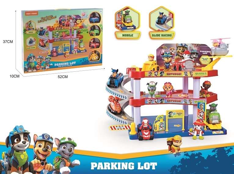 لعب مجموعة باو باترول وقوف السيارات مع مهبط للطائرات العمودية