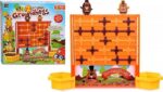 Includes an orange vertical game board, rotating crosspieces, collection bins, and groundhog playing pieces