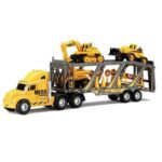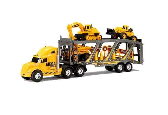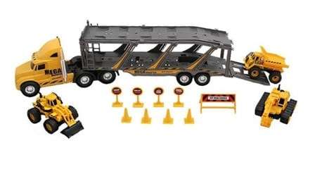 The 22-Inch Free Wheel Mega Construction 14-Piece Hauler Set by New Bright comes complete with Excavator, Loader, and Dump Truck and has everything you need to get the construction job completed.
