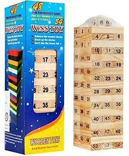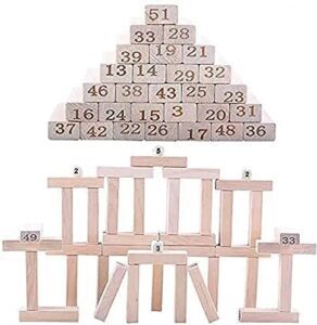 - QUALITY: Contains 54 High quality wooden blocks and 4pcs Dice with smooth edges and plane surface.