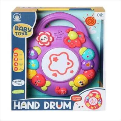 Introduce your little one to the joy of music with this delightful interactive Hand Drum toy! This colourful musical instrument features crisp sounds, vibrant lights, and engaging patterns that will captivate your baby’s attention. The drum’s design includes charming characters and bright, eye-catching colours arranged in a circular pattern. With its touch-and-knock functionality, this educational toy helps develop hand-eye coordination while providing hours of entertainment. The drum face displays adorable animated characters and decorative elements in purple, yellow, turquoise, and pink. Special features include colourful lights that illuminate during play and fun patterns that enhance the sensory experience. This musical toy is perfect for encouraging early learning through play, helping develop motor skills, and introducing rhythm and sound recognition to young children. The ergonomic design makes it easy for small hands to hold and play, making it an ideal first musical instrument for babies and toddlers.