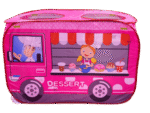 Pink dessert car-themed play tent featuring detailed graphics and shop window design for imaginative play
