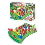 Features a durable green game board, colourful monkey pieces in red, blue, and green, and special trap mechanisms