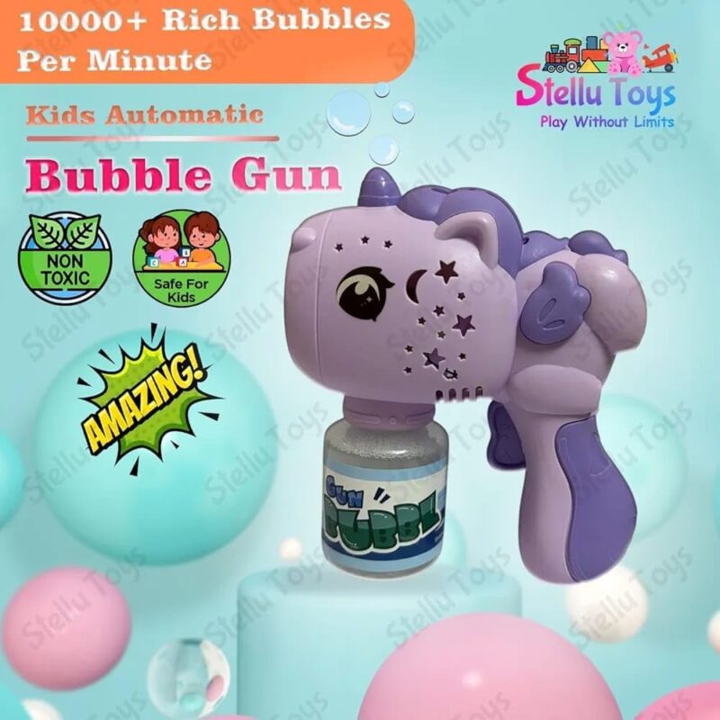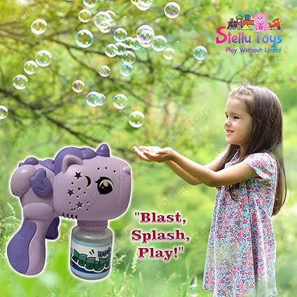 Unicorn Bubble Blower Machine, Purple and Pink, Star Design, Automatic Bubble Maker for Kids