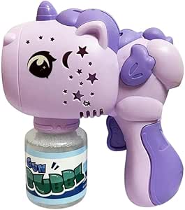 - DESIGN: Adorable unicorn-shaped bubble blower in pastel purple and pink colours with star and moon decorative patterns