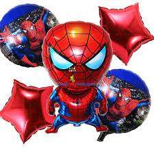 Spider Man Theme Happy Birthday Foil Balloons (Set of 5) Combo – 1 Big shape SpiderMan Foil Banner, 2 Blue Star, 2 Printed Round Banner
