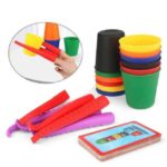Includes multiple coloured cups, special grabbing tools, and challenge cards for varied gameplay