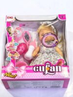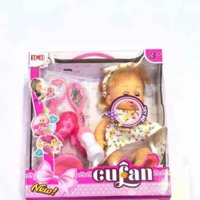 Bring joy and nurturing play to your little one with this adorable baby doll set. Dressed in a charming floral pattern dress with a matching headband, this doll comes complete with interactive feeding accessories. The set includes a pink bottle and feeding implements, perfect for imaginative role-play. The doll features soft, blonde hair and lifelike details that make playtime more engaging. Designed for children aged 3 and above, this toy helps develop empathy, responsibility, and social skills through pretend parenting scenarios. The feeding accessories encourage interactive play as children can mimic caring for their own baby. The doll’s size is ideal for little hands to hold and carry. This delightful playset provides hours of entertainment while fostering emotional development and nurturing instincts in young children. The pretty packaging makes it an excellent gift choice for birthdays or special occasions.