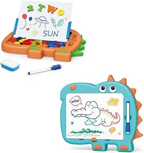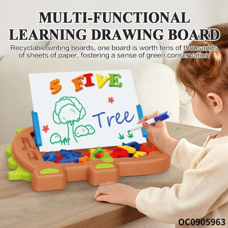 Kids Drawing Board Set with Dinosaur Design, Double-Sided Magnetic Writing Tablet, Educational Learning Toy