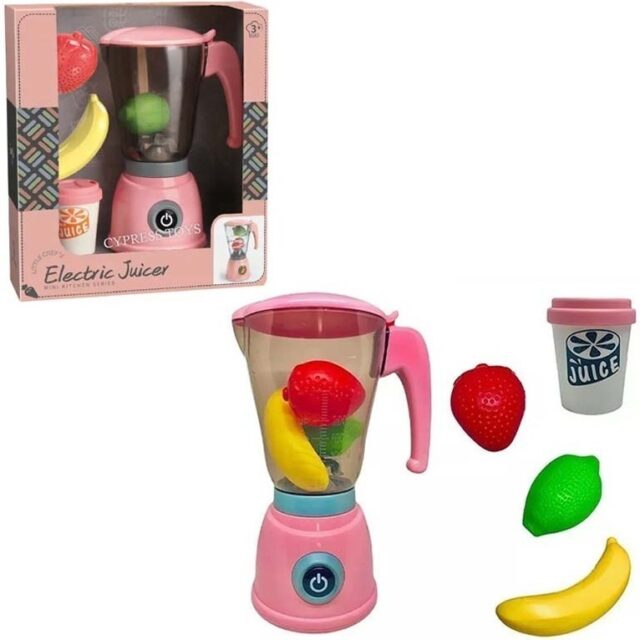 Cypress Toys Kids Play Kitchen Electric Juicer Set, Pink, with Fruit Accessories