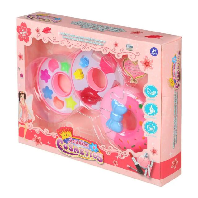 Fashion Cosmetics Play Makeup Set for Kids, Donut-Shaped Case, Ages 3+, Pink