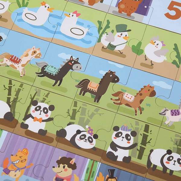 1. The number of animals and the number of the carriage are connected to form a long train. They come with matching outlines so kids wont get frustrated.