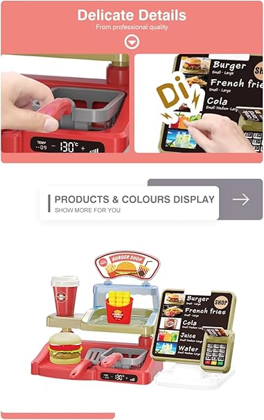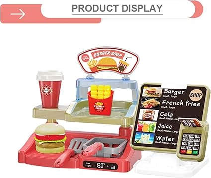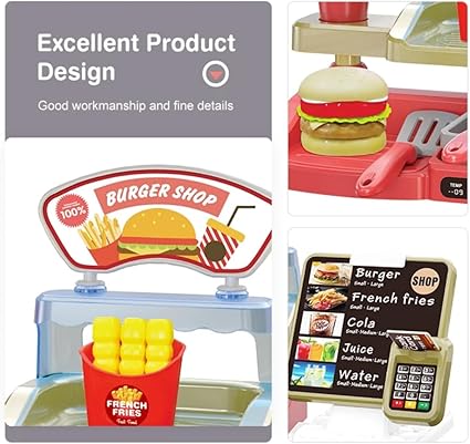 Kids Burger Shop Playset with Cash Register, Menu Board, Food Accessories, Educational Pretend Play Toy