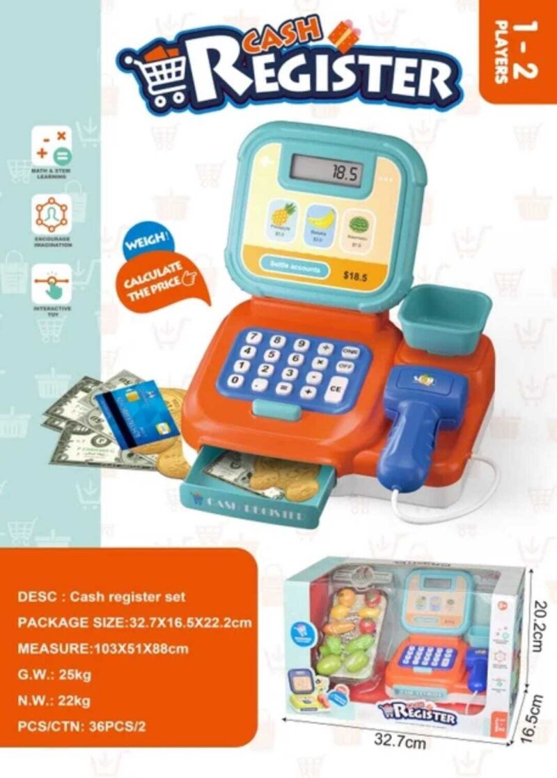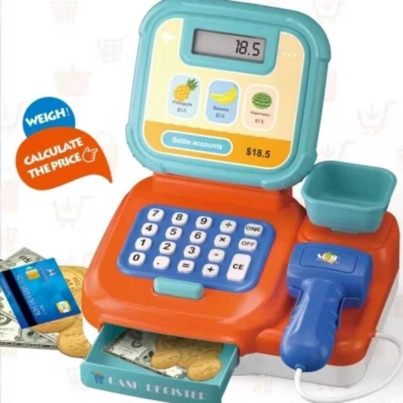 Transform playtime into an educational adventure with this interactive cash register toy! Perfect for young minds exploring mathematics and commerce, this modern toy cash register comes equipped with a clear LCD display, functional calculator, and realistic scanner that brings the shopping experience to life. The set includes play money and a card reader to help children understand different payment methods in today’s digital world. Watch as your little one develops basic arithmetic skills, money management concepts, and social interaction abilities through imaginative play. The colourful design in vibrant orange, blue, and turquoise makes learning engaging and fun. Built with durable materials and featuring large, easy-to-press buttons, this cash register is ideal for small hands. Whether playing shop keeper or customer, children will enhance their counting abilities, develop problem-solving skills, and gain confidence in handling transactions. An excellent tool for role-play that combines entertainment with practical life skills, making it a valuable addition to any toy collection.