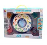 Light-up circular board creates an engaging fishing experience with rotating fish and sound effects for enhanced entertainment