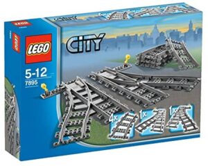Change train direction! Add switching tracks to your train track layout and change direction with the flip of a lever. Set includes 4 curved rails, 1 left side switching track and 1 right side switching track. Tracks do not conduct electricity and therefore are not compatible with LEGO 9v Trains.