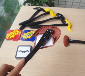 - Includes: 6 Moustache Sticks, 32 Moustache Cards, and 1 Instruction Sheet.