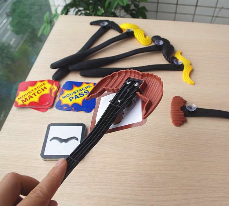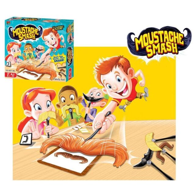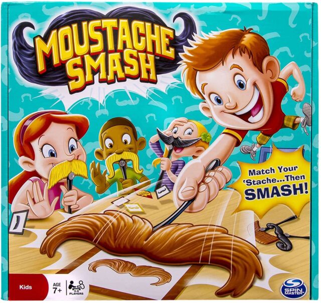 - Remember which moustache you’re wearing and watch for a card match. If it’s the same color or shape, SMASH that ‘stache card! If you’re the fastest, you get a point.