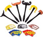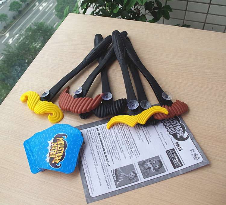 - Includes: 6 Moustache Sticks, 32 Moustache Cards, and 1 Instruction Sheet.