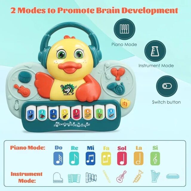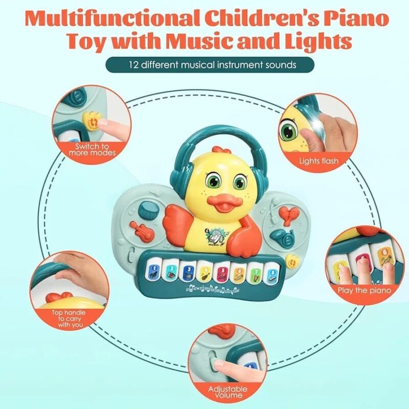 Musical Duck Piano Toy for Kids, 8 Instrument Sounds, Light-Up Headphones, Educational Learning Keyboard