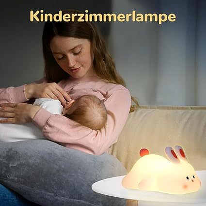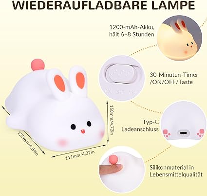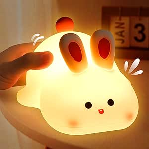 Umikk Soft Touch Silicone Lamp, Touch Bedside Lamp, Silicone Rabbit Night Lamp for Children’s Room, USB Rechargeable Portable LED Night Light, Silicone Touch Lamp, Soft Big Face Rabbit