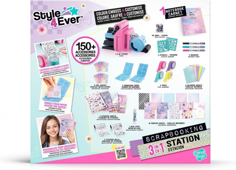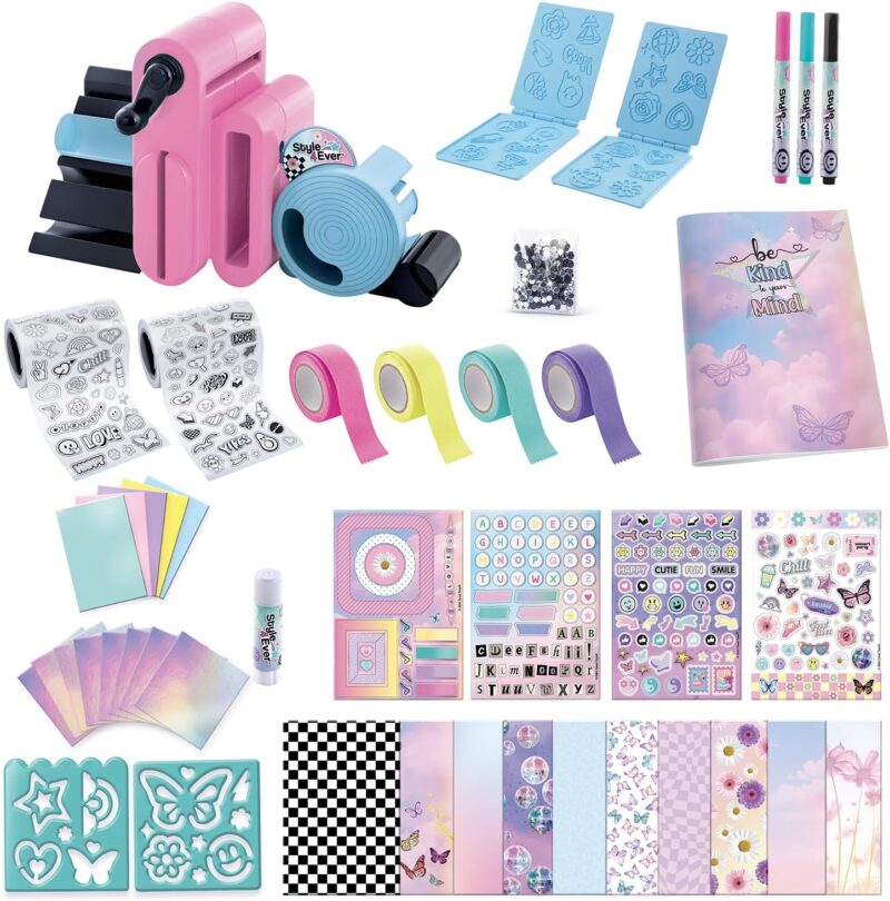 3 IN 1 STATION: Emboss paper, design your own sticky tapes and customise fun stickers! With a notebook included, enjoy hours of creative fun!