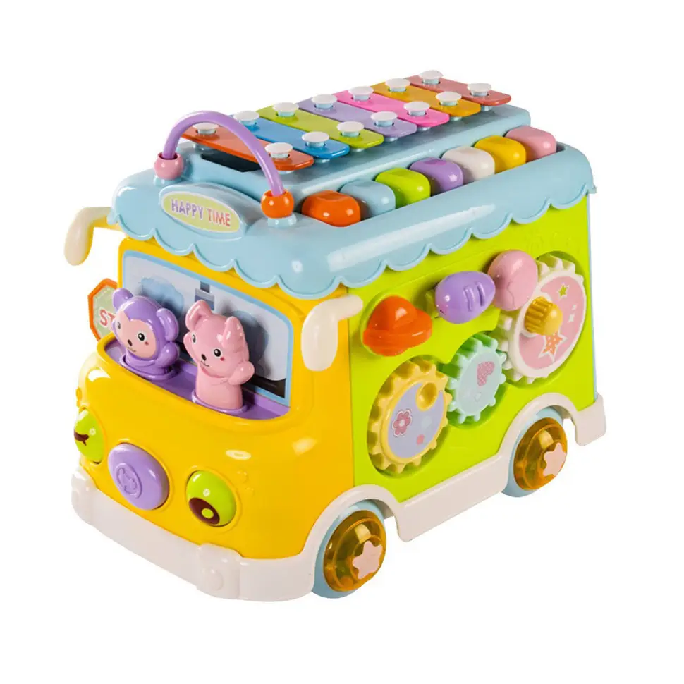Xylophone-sorter bus for toddlers musical toy with geometric shapes and a ride-on